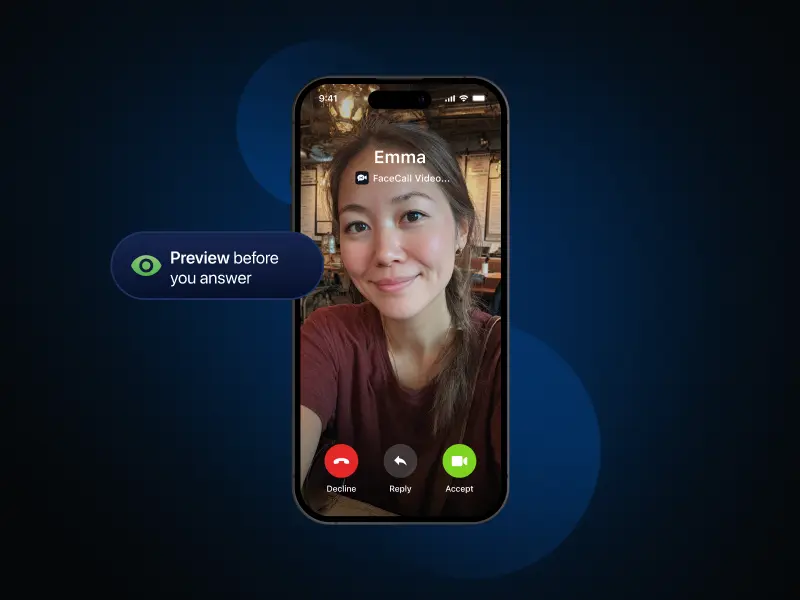 The first real-time video preview *before* the call is answered - where you get to know who’s calling for what purpose before you even pick up the phone.